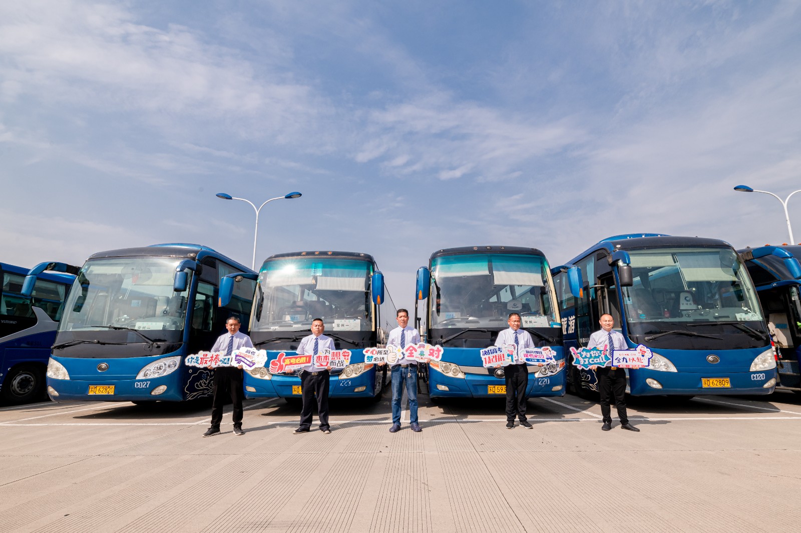 優(yōu)質(zhì)高考,服務(wù)更人性。所有車輛按照標準做好衛(wèi)生保潔工作,全程循環(huán)通風,提供一個綠色溫馨的乘車環(huán)境。所有駕駛員標準著裝,笑臉迎客,引導學生上車,在送考途中為考生播放相聲、小品等娛樂性的節(jié)目,為考生減壓。公司還精心制作了“高考必勝、為你打call”等標牌,為考生助力加油。駕駛員將嚴格按照規(guī)定時間發(fā)車,全程勻速行駛,確保安全準點將考生送達指定考場??忌萝嚭?,駕駛員將及時對車內(nèi)進行細致的檢查,防止出現(xiàn)“馬大哈”學生丟失文具的情況出現(xiàn)。公司還安排安管人員帶隊,做好現(xiàn)場指揮管理,配備應(yīng)急車輛及機動駕駛員,做好應(yīng)急保障。
