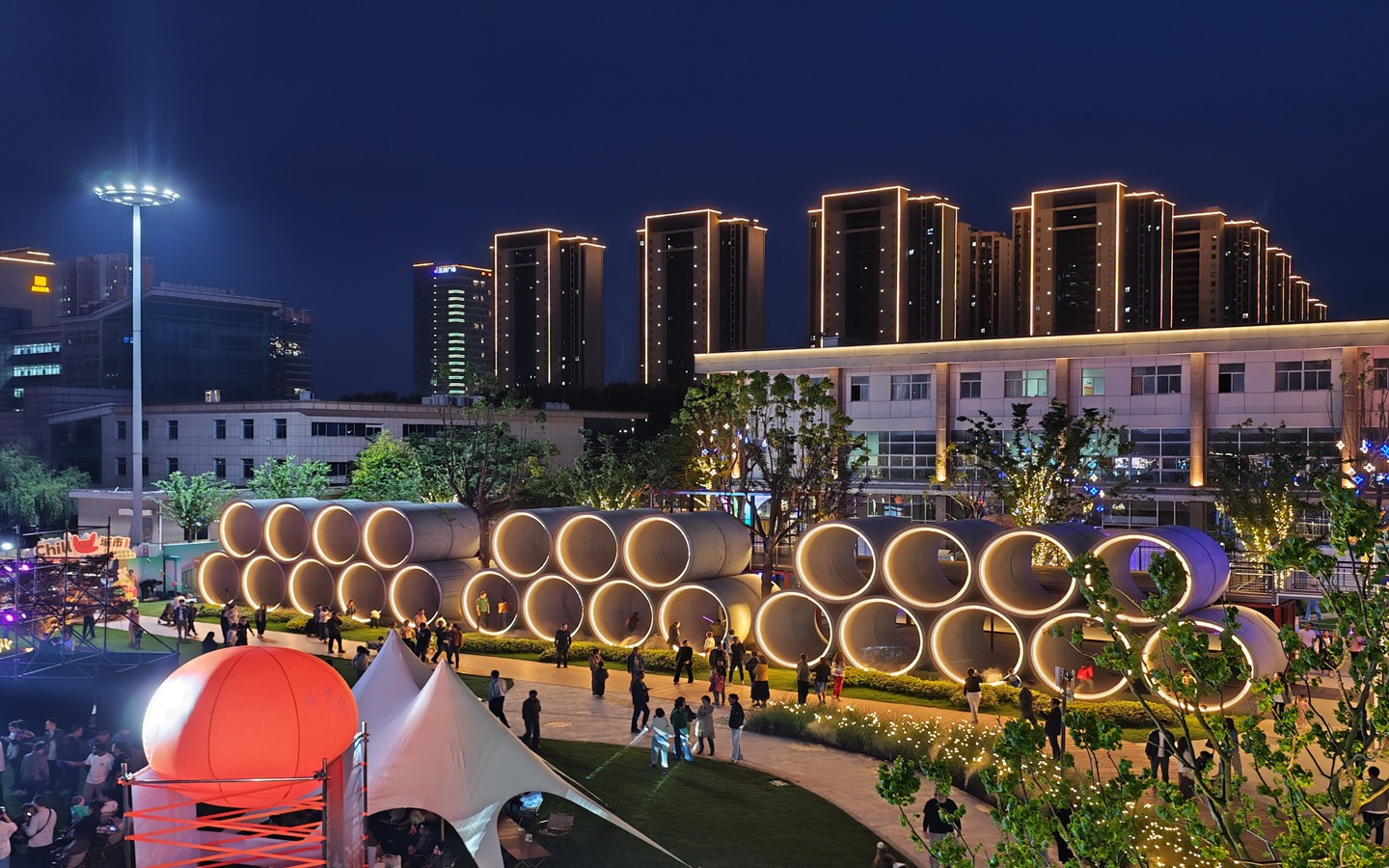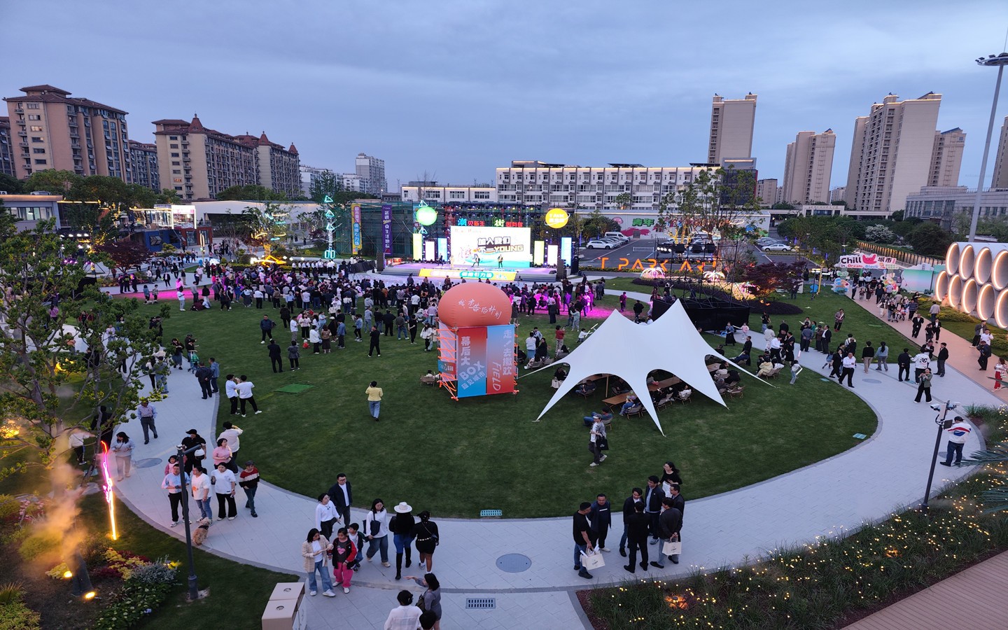 開(kāi)放街區(qū),24小時(shí)嗨玩勝地。主打開(kāi)放式城市公園風(fēng)格,街區(qū)設(shè)計(jì)了6個(gè)人行出入口、小橋流水式步道、開(kāi)闊的自然空間以及各式樓頂觀景休閑露臺(tái),開(kāi)放、共享的元素打造將成為時(shí)尚一族City walk的新去處,漫步園內(nèi),似有“身處鬧市中,行走在自然里”的超然之感。城市微度假的特色,將城市公園與多巴胺集裝箱結(jié)合,60多個(gè)顏色造型業(yè)態(tài)各不相同的集裝箱、巴士、蘑菇屋、蛋屋,2000㎡林下空間,夏威夷等多式情調(diào)風(fēng)格,既是精致的煙火美食休閑之所,也是拍客打卡出片勝地。街區(qū)一步一景,將汽車(chē)、“海豚少年”Timmo、“我愛(ài)常州”等元素融入街區(qū)。街區(qū)全區(qū)燈光亮化,白天這里是城市繁忙的一隅,讓你感受城市公園的放松。夜晚,華燈初上,這里是24小時(shí)不打烊的嗨場(chǎng),龍城夜未央的精彩在這里盡數(shù)體現(xiàn)。街區(qū)將不定期舉辦草坪音樂(lè)節(jié)、演說(shuō)會(huì)等活動(dòng),積極為常州“青春樂(lè)都”添磚加瓦,也會(huì)舉辦藝術(shù)類(lèi)市集、戶(hù)外主題沙龍、團(tuán)建拓展等文化活動(dòng)。